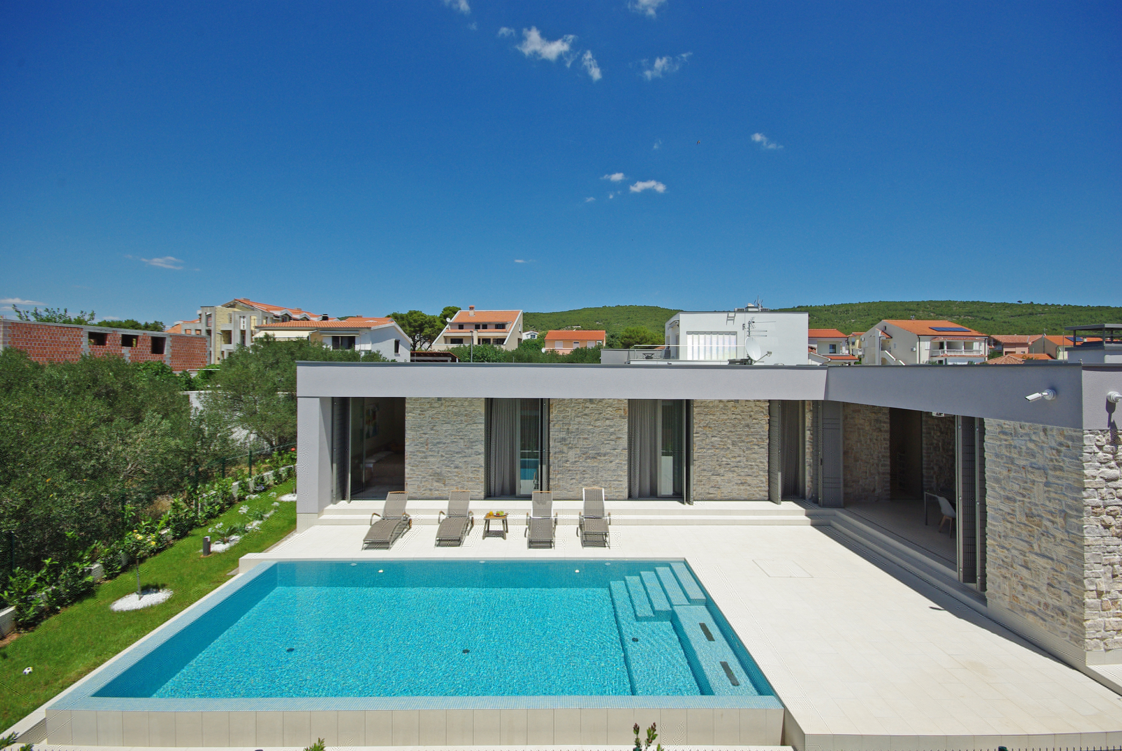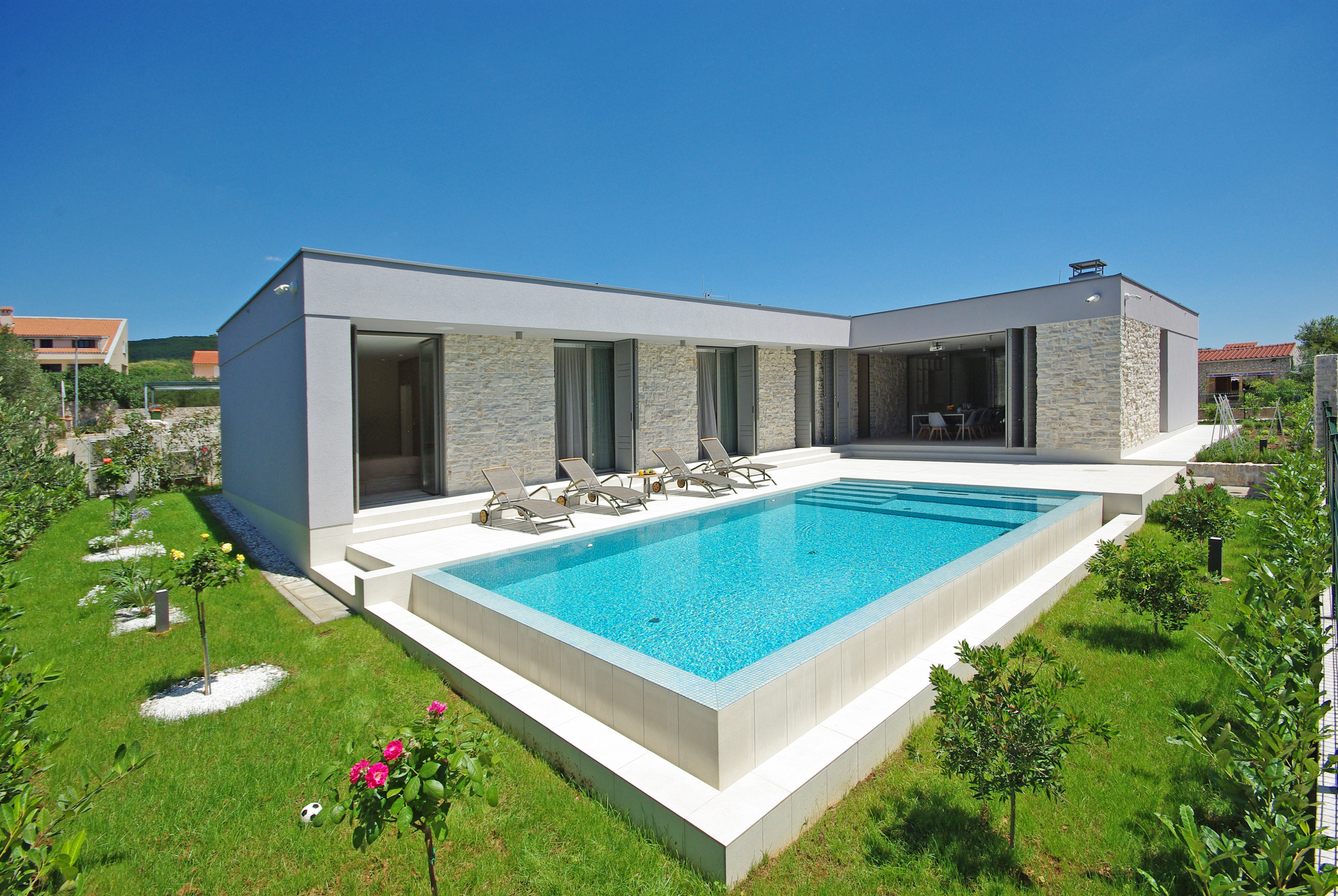 The swimming pool is accessible from all bedrooms and outdoor terraces